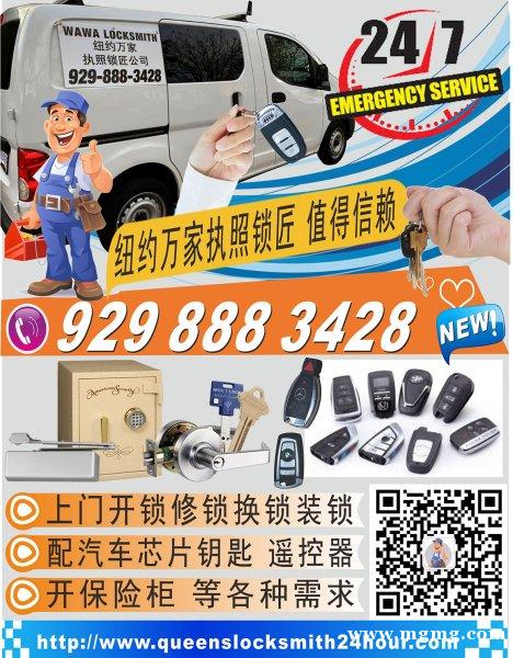 纽约万家锁匠 开锁 配汽车钥匙 修换装锁 queens wawa locksmith