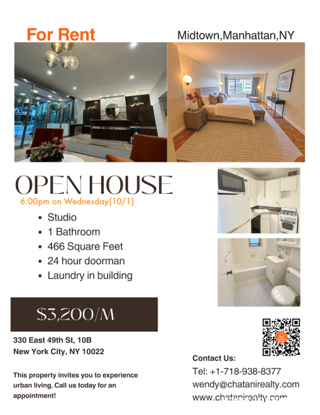在寸土寸金的曼哈顿中城,用 $3,200/月 就能租到这样一套约650平方英尺的宽敞一卧室公寓,实属难得。