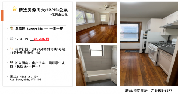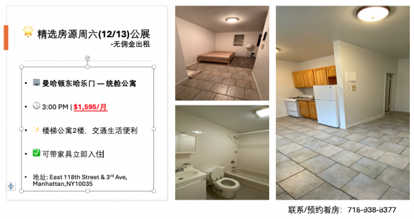 纽约曼哈顿中城带阳台一室一厅出租$4425/月包水暖
