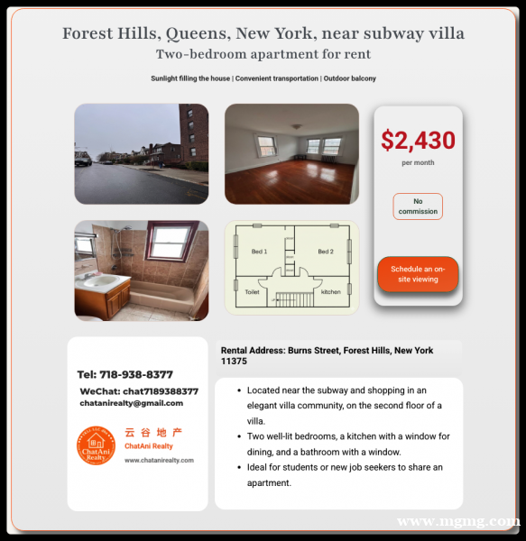 纽约皇后区Queens_森林小丘_两室户出租2430