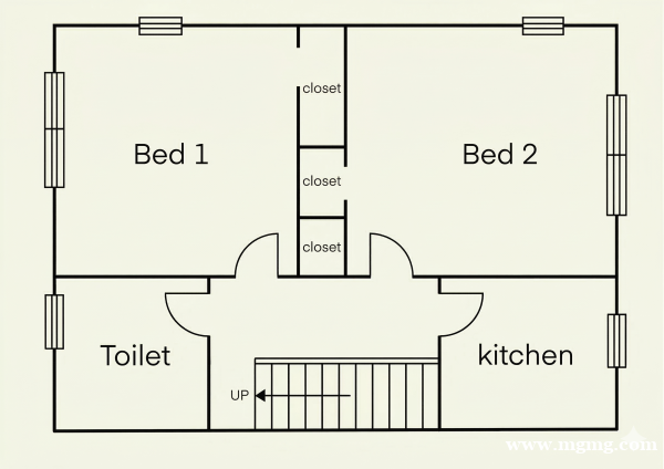两个光线好卧室,有窗可吃饭厨房和有窗洗手间。